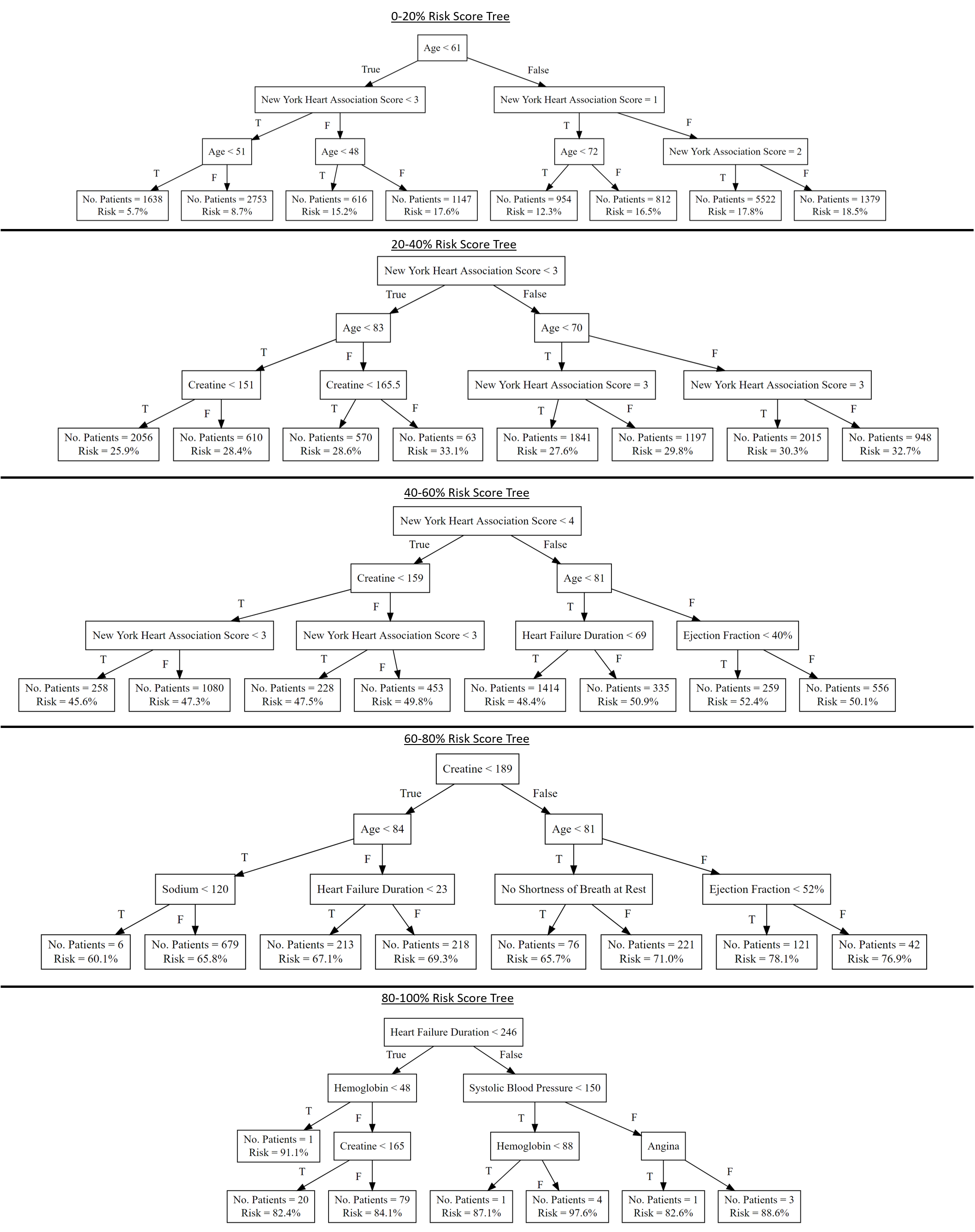 To create local approximations, after the neural network generated its risk scores, a different decision tree was trained for each quintile of risk: 0-20%, 20-40%, etc.