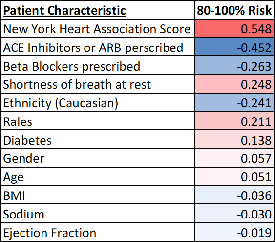 We have trained a neural network to predict the risk, or probability that a given patient who has suffered heart failure will die within one year of the heart failure event.